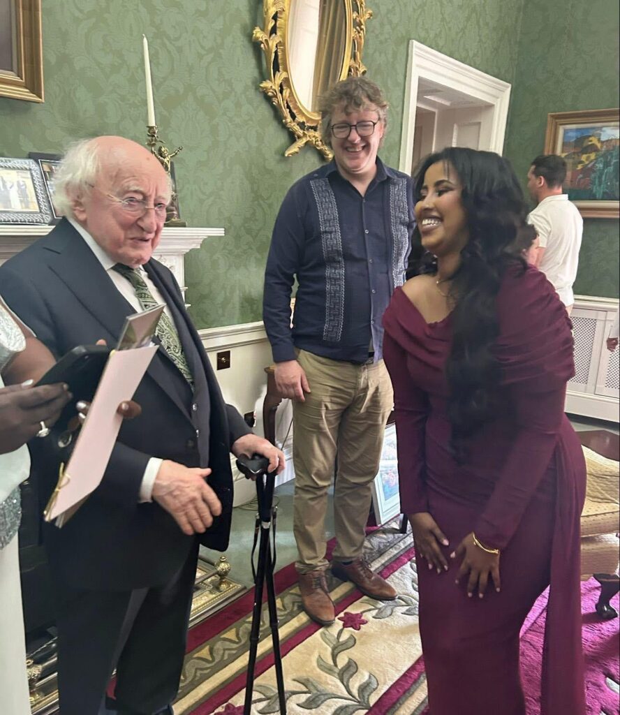 She also had the honour of meeting President Michael D. Higgins and First Lady Sabina Higgins, a symbolic moment of recognition and appreciation for the voices of the Horn of Africa community in Ireland.